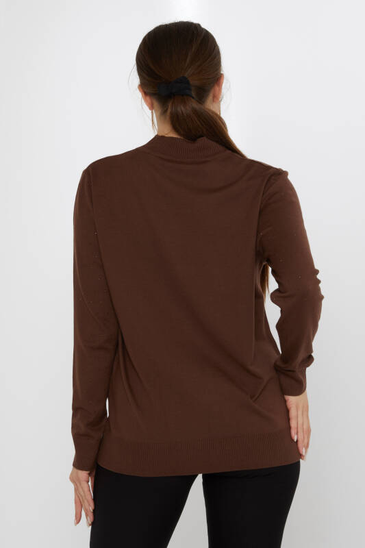 Pull en maille brodé de pierres à manches longues café - 31513 | KAZEE (Lot de 3 L-XL-2XL)
