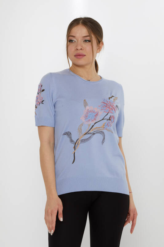 Pull en maille brodé floral Pierre brodée Menthe - 31725 | KAZEE (Lot de 3 L-XL-2XL)