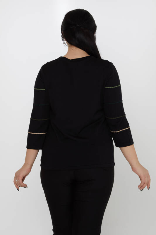 Pull en maille à rayures et col rond brodé noir-kaki - 31392 | KAZEE (Lot de 3 M-L-XL)