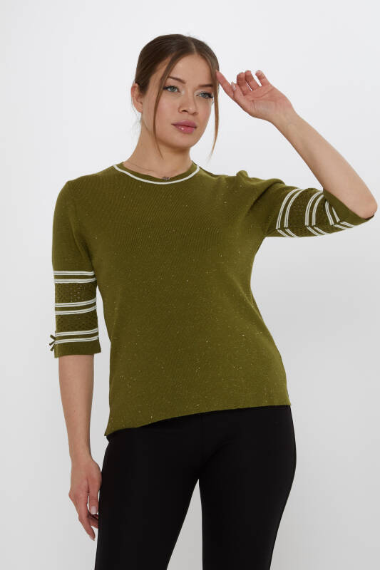 Pull en tricot avec détails sur les manches et paillettes vert foncé - 31316 | KAZEE (Lot de 3 M-L-XL)