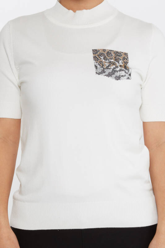 Pull Maille Léopard Brodé Pierre Col Montant Ecru - 31623 | KAZEE (Lot de 4 M-L-XL-2XL)