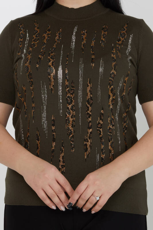 Pull Maille Léopard Brodé Pierre Col Montant Vert - 31565 | KAZEE (Lot de 3 M-L-XL)