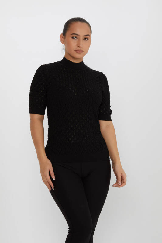 Pull en Maille Transparent Détaillé Manches Courtes Noir - 30035 | KAZEE (Lot de 4 S-M-L-XL)
