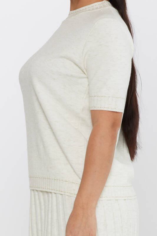 Pull Maille Manches Courtes Pailleté Ecru - 31626 | KAZEE (Lot de 3 M-L-XL)