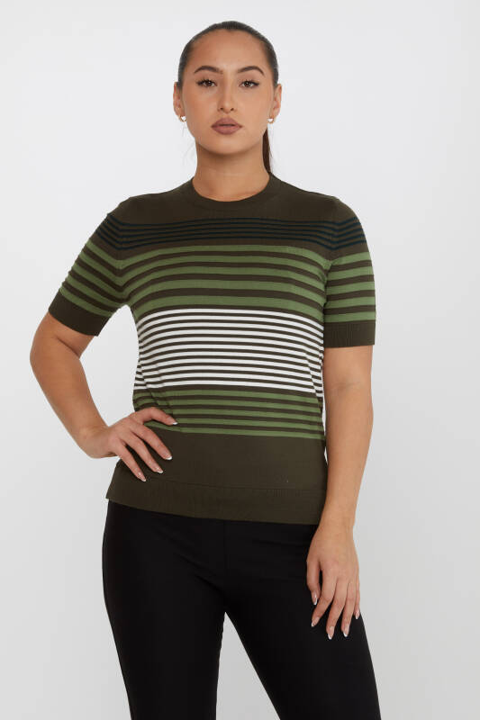 Pull en maille rayé à manches courtes kaki - 31273 | KAZEE (Lot de 3 S-M-L)
