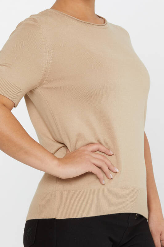 Pull en maille à manches courtes avec logo beige - 16271 | KAZEE (Lot de 4 L-XL-2XL-3XL)