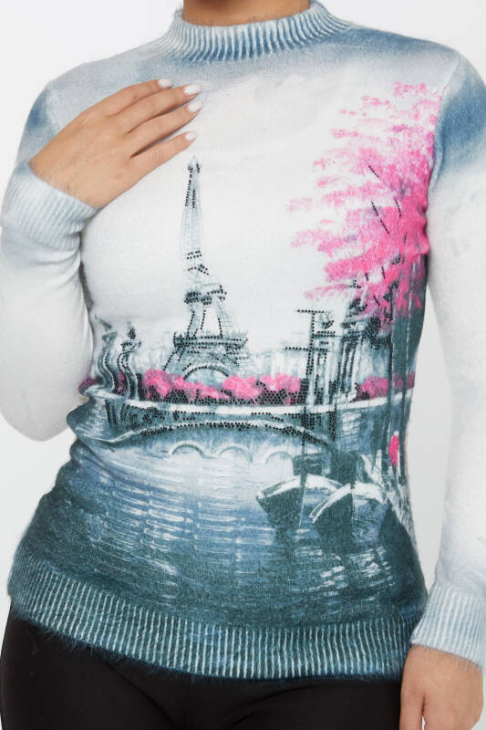 de punto de angora con cuello alto estampado Azul - 50019 | KAZEE (Juego de 2 S-M)