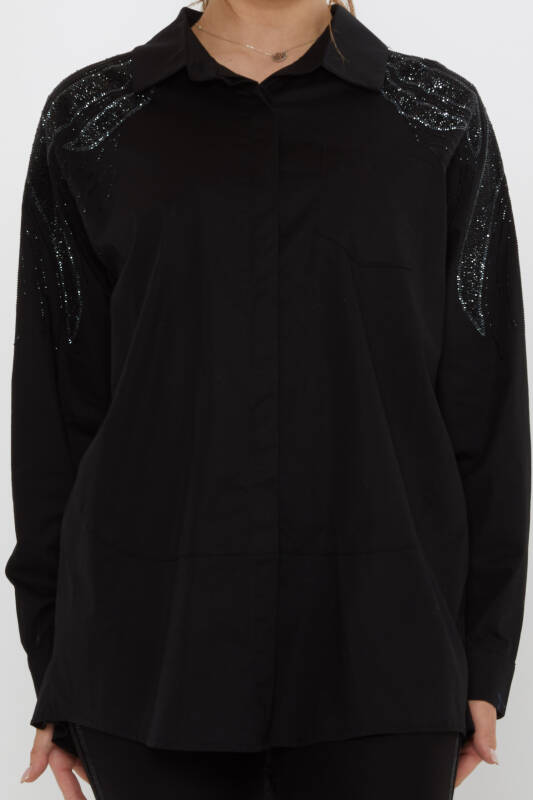 قميص أسود بأكمام طويلة مزين بحجر على الكتف - 20552 | كازي (طقم من 3 قطع، مقاسات 46-48-50)