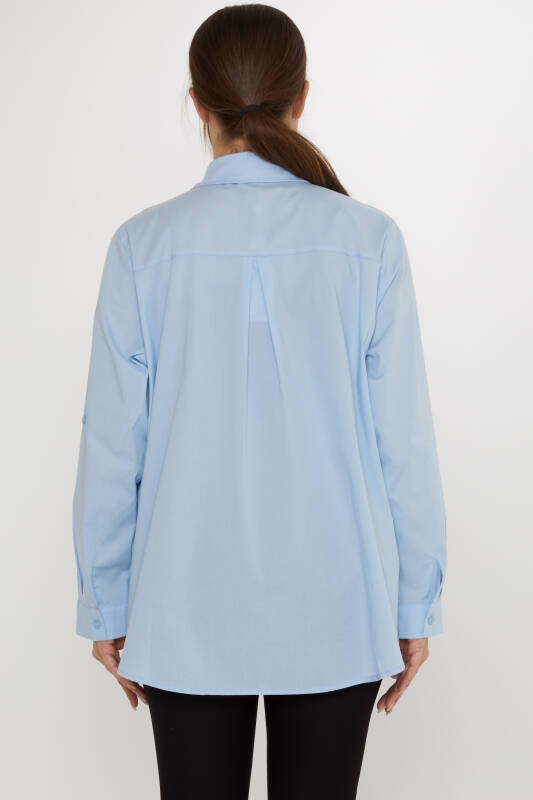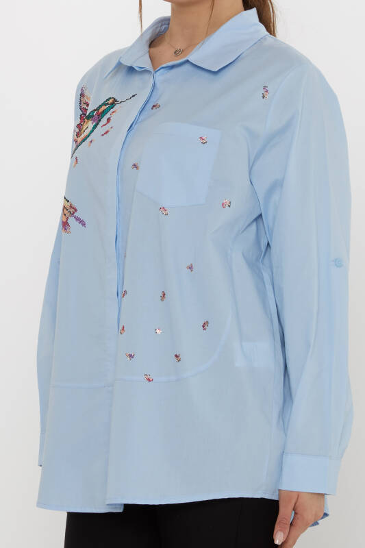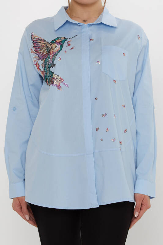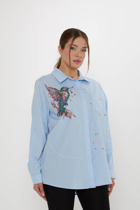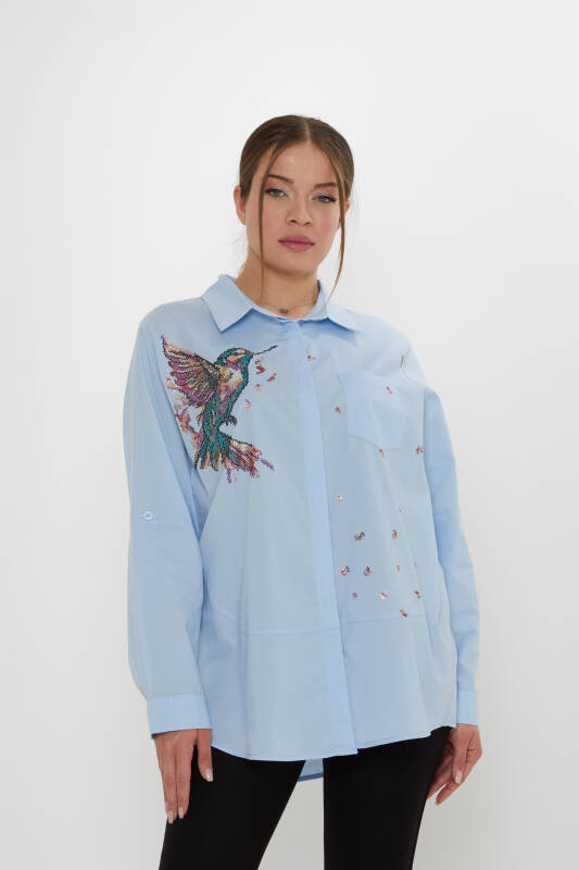 قميص بنقشة طيور، مزين بأحجار ملونة، أزرق - 20518 | كازي (طقم من 3 قطع، مقاسات 46-48-50)