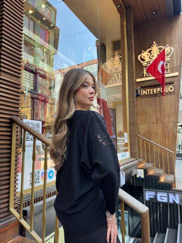 Черный вязаный свитер с тюлевой отделкой и украшениями из камней - 32174 | KAZEE (комплект из 3 предметов XL-2XL-3XL)