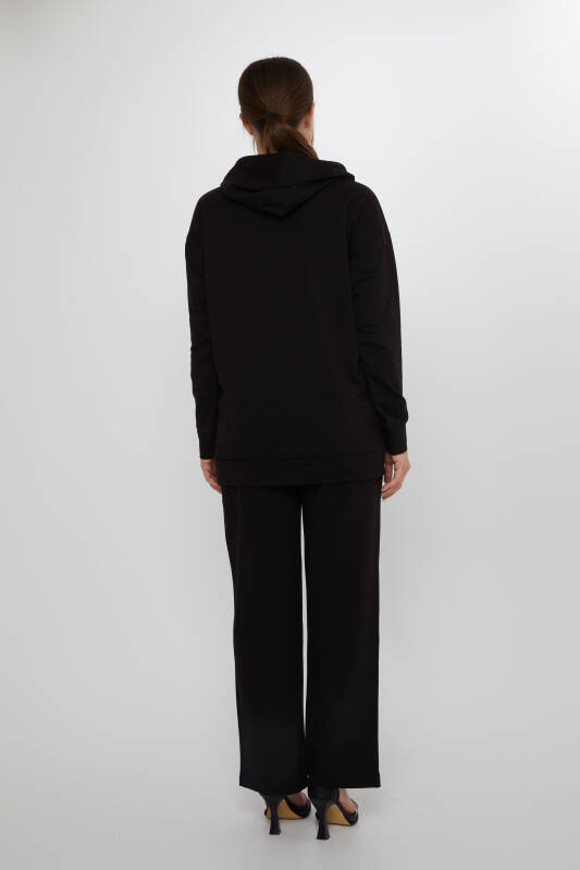 Set Trening Leopard Stone Brodat Maneca Lunga Negru - 17901 | KAZEE (Set de 3 M-L-XL)