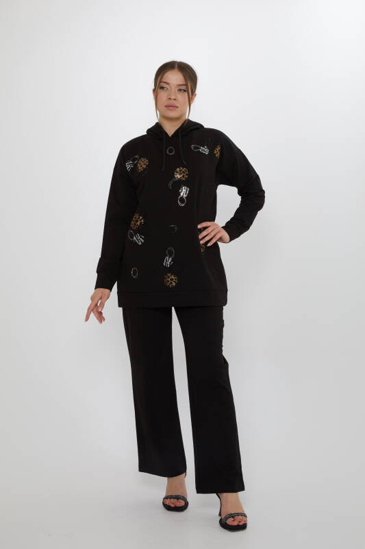 Set trening cu model de piatră cu detaliu glugă neagră - 17898 | KAZEE (Set de 3 M-L-XL)