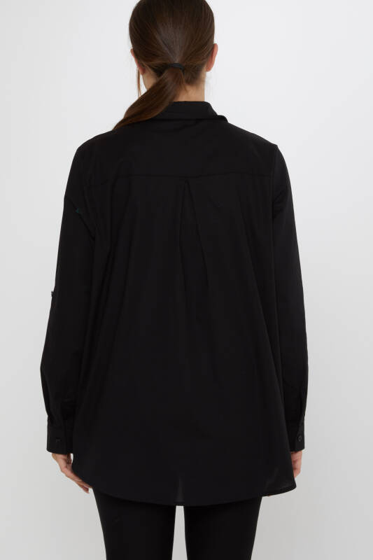 Shirt with Bird Pattern, Colorful Stone Embellished, Black - 20518 | KAZEE (3-Piece Set 46-48-50)