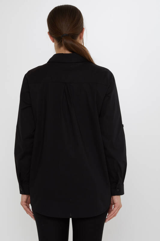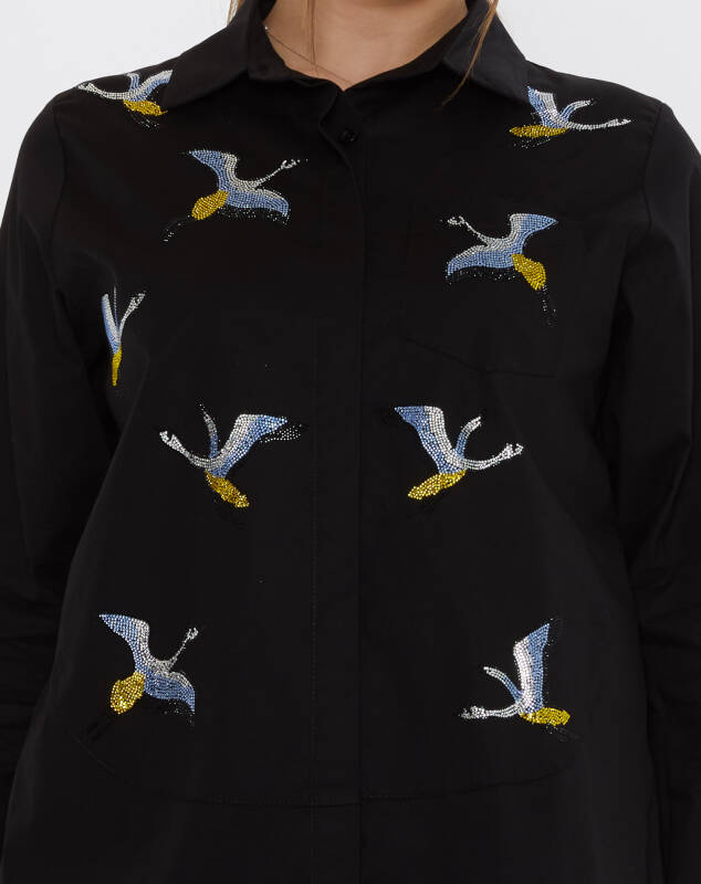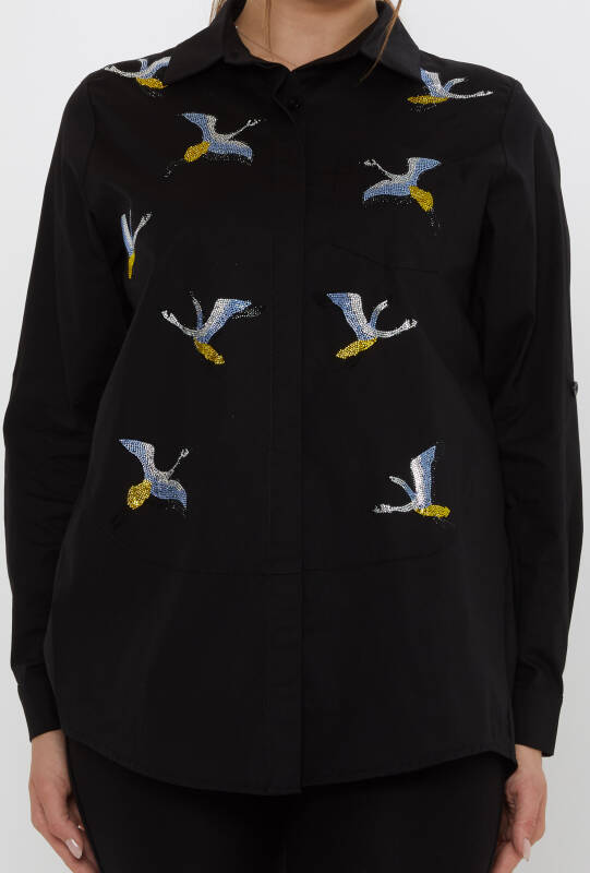 Shirt with Colorful Stone Embellished Bird Pattern, Black - 20523 | KAZEE (3-Piece Set 40-42-44)