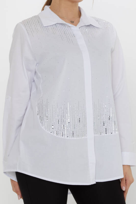Long-Sleeved Shirt with Crystal Stone Embellishments, Ecru - 20558 | KAZEE (3-Piece Set 42-44-46)