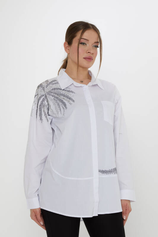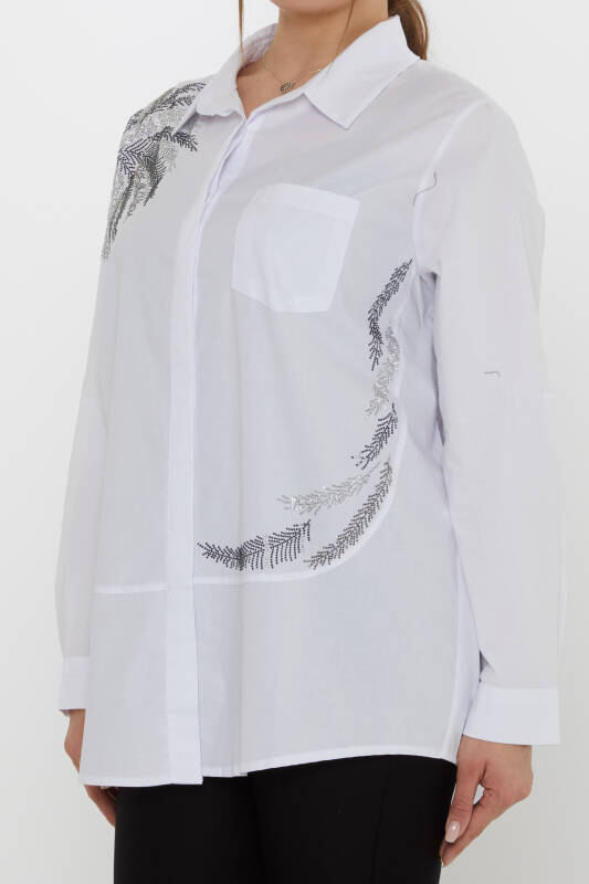 Shirt with Pocket Detail and Stone Embellishments, White - 20557 | KAZEE (3-Piece Set 46-48-50)
