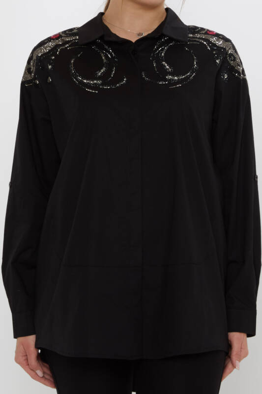 Shirt with Shoulder Stone Embellishment, Long Sleeves, Black - 20542 | KAZEE (3-Piece Set 46-48-50)