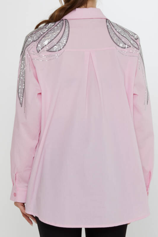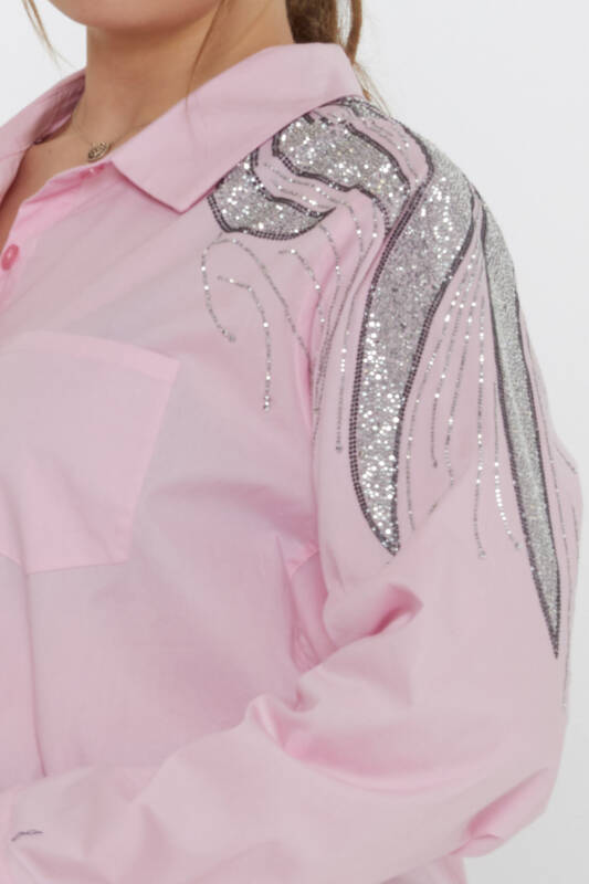 Pink Long-Sleeved Shirt with Shoulder Stone Embellishment - 20552 | KAZEE (3-Piece Set 46-48-50)