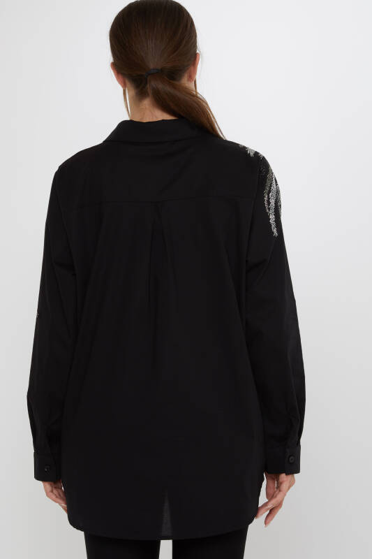 Shirt with Pocket Detail and Stone Embellishments, Black - 20557 | KAZEE (3-Piece Set 46-48-50)