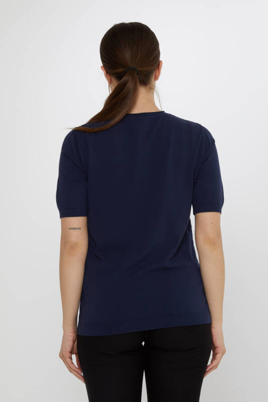 Maglione in maglia con spilla a nastro a manica corta blu navy - 31815 | KAZEE (Set di 3 L-XL-2XL)