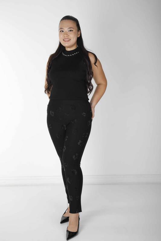 Spodnie Czarne w kropki i kamienie - 3767 | KAZEE (zestaw 4 szt. 42-44-46-48)