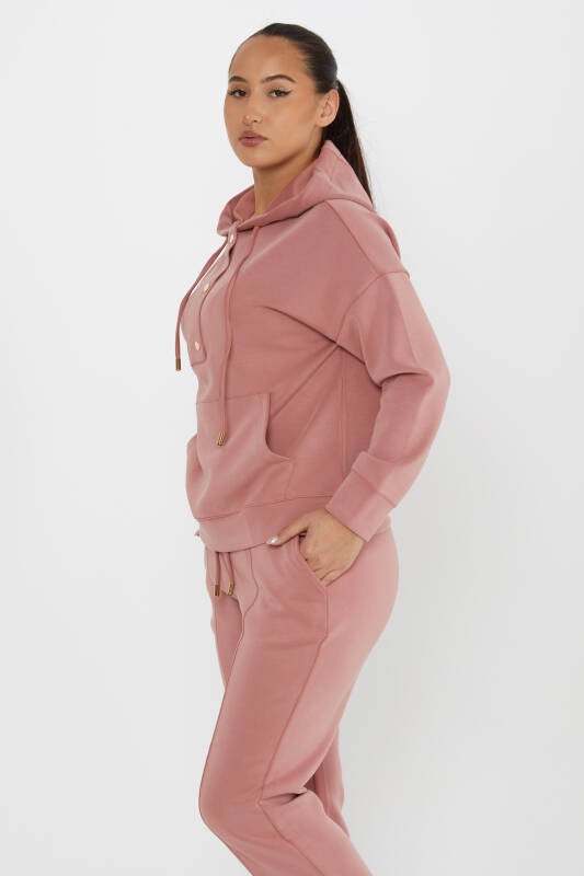 Комплект спортивного костюма с карманом и капюшоном, пыльная роза - 17627 | КАЗИ (набор из 4 шт. S-M-L-XL)