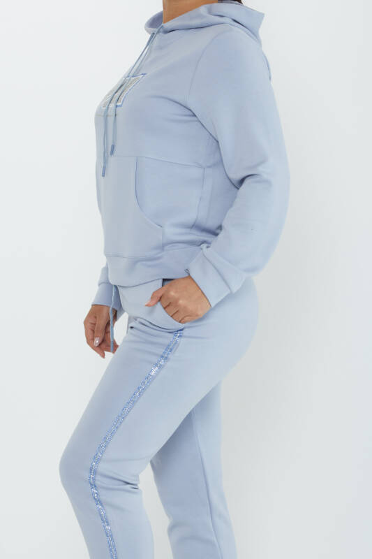 Комплект спортивного костюма с капюшоном и вышивкой камня, синий - 17593 | КАЗИ (набор из 4 шт. M-L-XL-2XL)