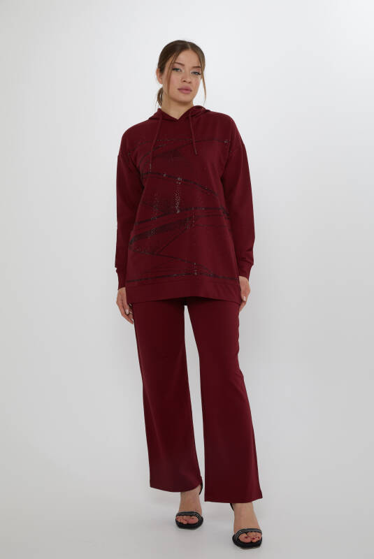 Спортивный костюм с карманом и капюшоном, бордовый - 17900 | KAZEE (Набор из 3 шт. M-L-XL)