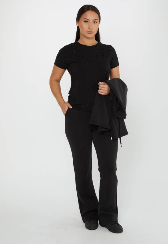 Комплект спортивного костюма на пуговицах с каменной вышивкой, черный - 17622 | КАЗИ (набор из 4 шт. S-M-L-XL)