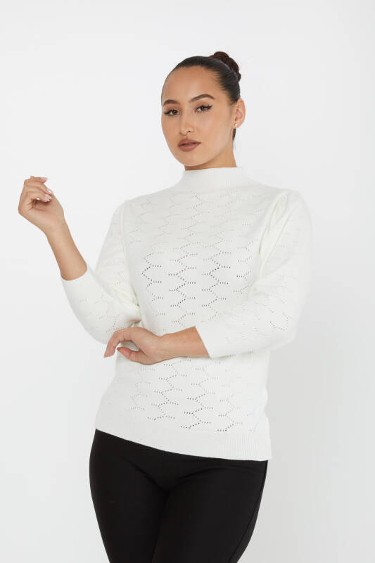 Strickpullover mit Muster und Ballonärmeln Ecru – 30341 | KAZEE (4er Set S-M-L-XL)