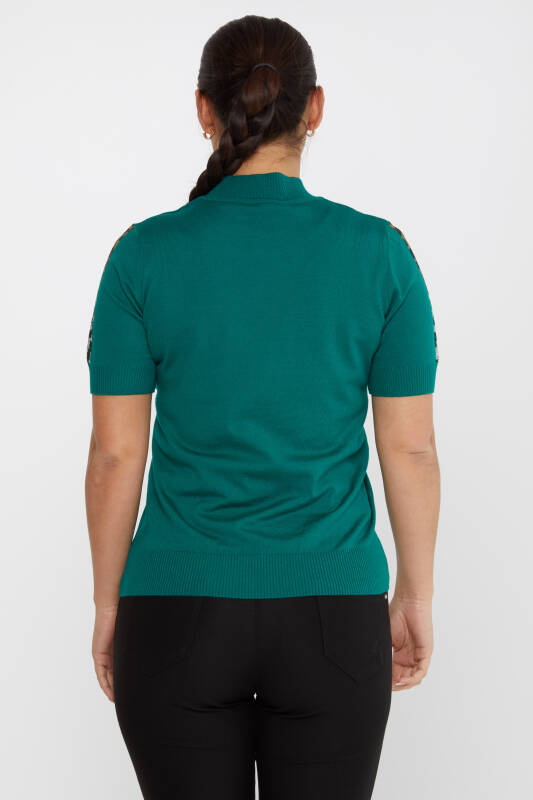 Strickpullover Leopardenstein Bestickter Stehkragen Grün - 31623 | KAZEE (4er-Set M-L-XL-2XL)