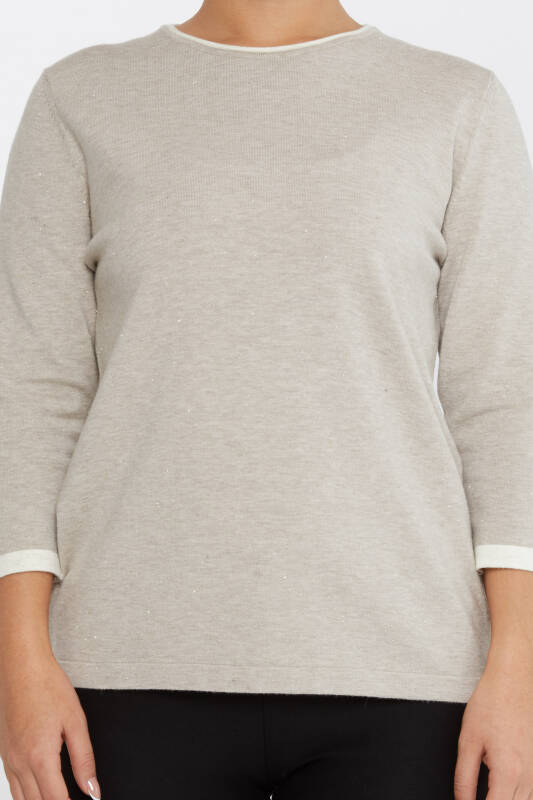 Strickpullover mit Glitzerdetails, lange Ärmel, Nerz – 31605 | KAZEE (3er-Set M-L-XL)