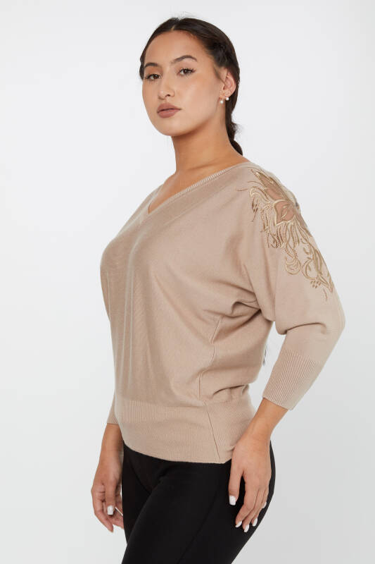 Strickpullover mit besticktem Steinmuster, Nerz – 30924 | KAZEE (4er-Set M-L-XL-2XL)