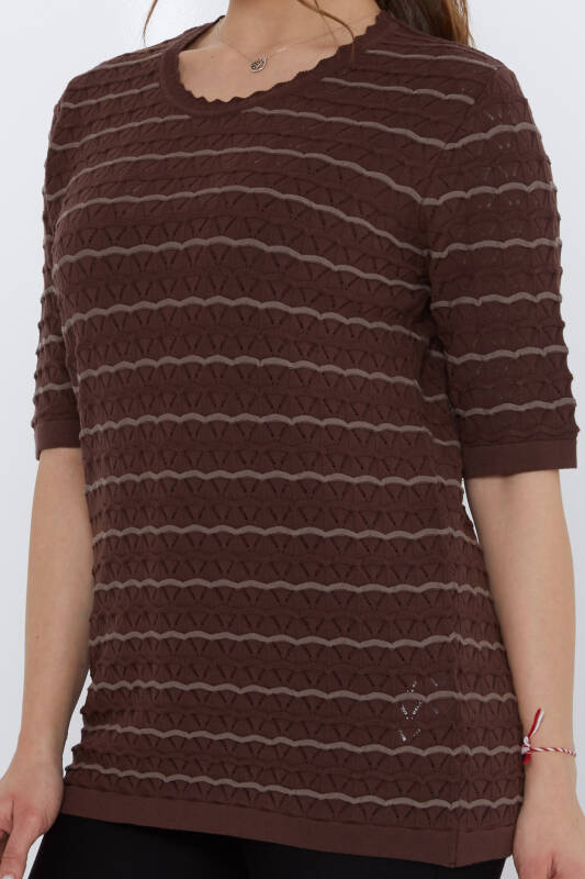Strickpullover mit Streifendetail und Durchbruchmuster, Braun-Nerz - 31778 | KAZEE (3er-Set M-L-XL)