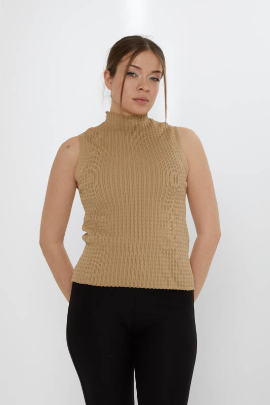 Strickpullover Nullärmel Stehkragen Beige - 31658 | KAZEE (3er-Set S-M-L)