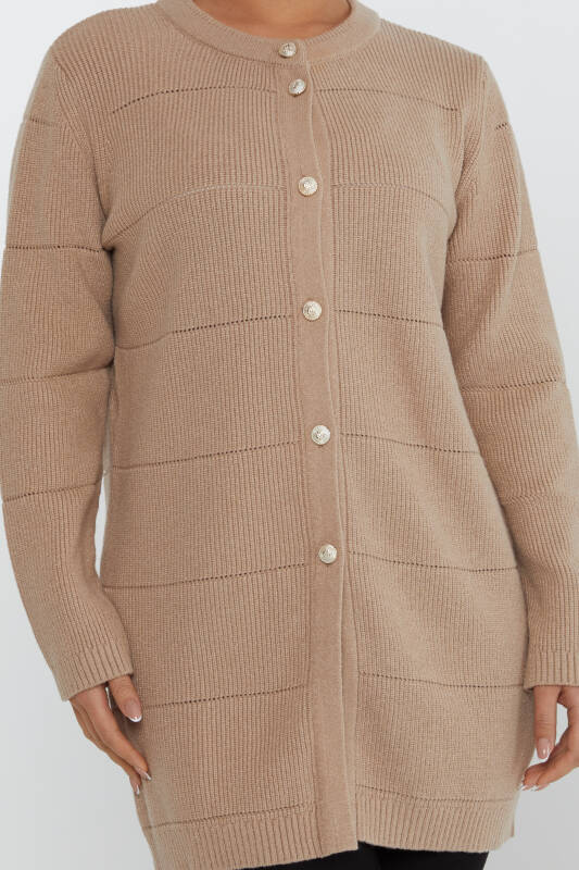 Strick-Cardigan mit Knopfdetail, perforiert, Beige – 30643 | KAZEE (3er-Set M-L-XL)