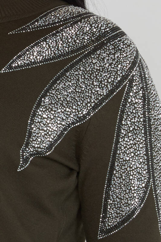 Strickpullover mit steinbesticktem Schulter-Stehkragen Khaki – 31601 | KAZEE (3er-Set M-L-XL)