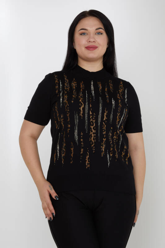 Suéter de punto con bordado de leopardo y piedra, cuello alto, negro - 31565 | KAZEE (Juego de 3 tallas M-L-XL)