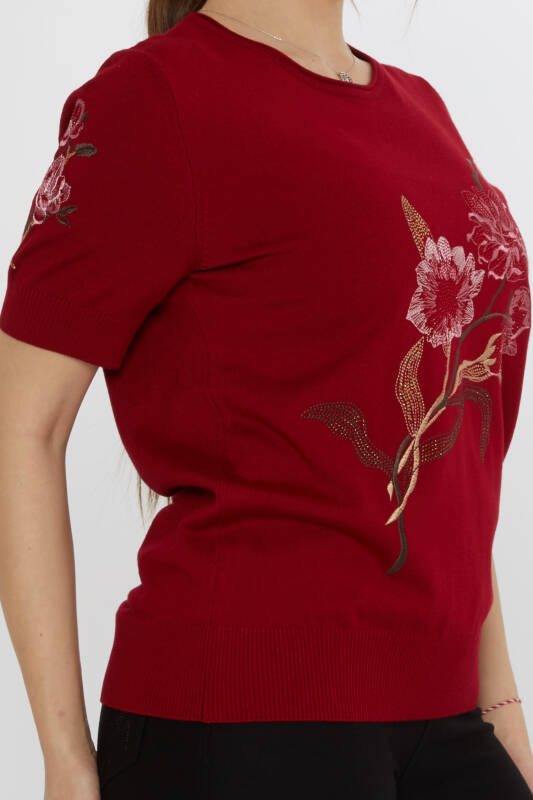 Suéter de punto con bordado floral y piedra bordada en rojo burdeos - 31725 | KAZEE (Juego de 3 L-XL-2XL)