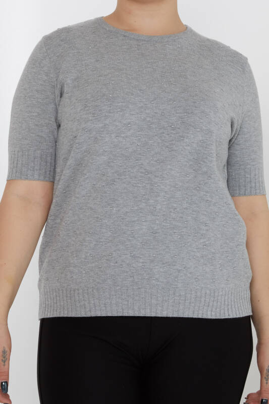 Suéter de punto con detalle de purpurina y manga corta gris - 31714 | KAZEE (Juego de 3 XL-2XL-3XL)