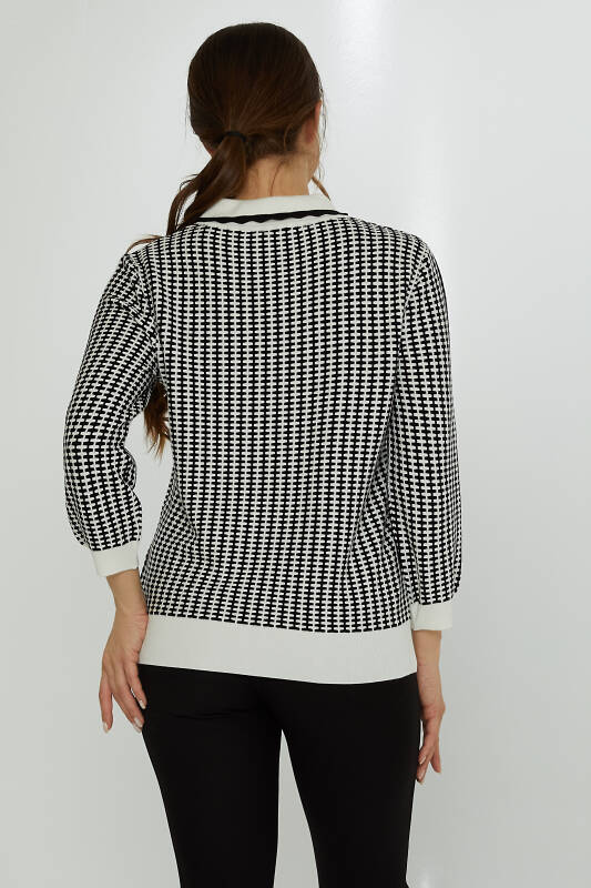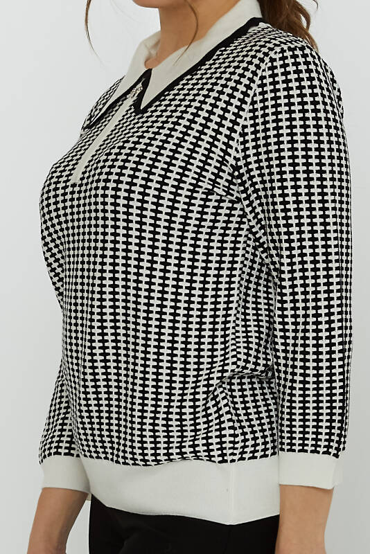 Suéter de punto cuello delantal estampado pata de gallo piedra crudo-negro - 31570 | KAZEE (Juego de 3 XL-2XL-3XL)