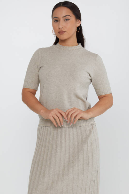 Suéter de punto de manga corta con purpurina visón - 31626 | KAZEE (Juego de 3 tallas M-L-XL)