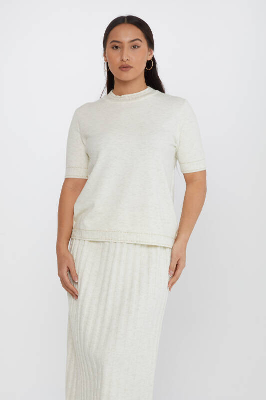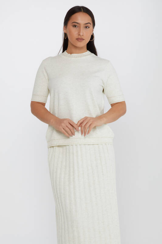 Suéter de punto de manga corta con purpurina en color crudo - 31626 | KAZEE (Juego de 3 tallas M-L-XL)