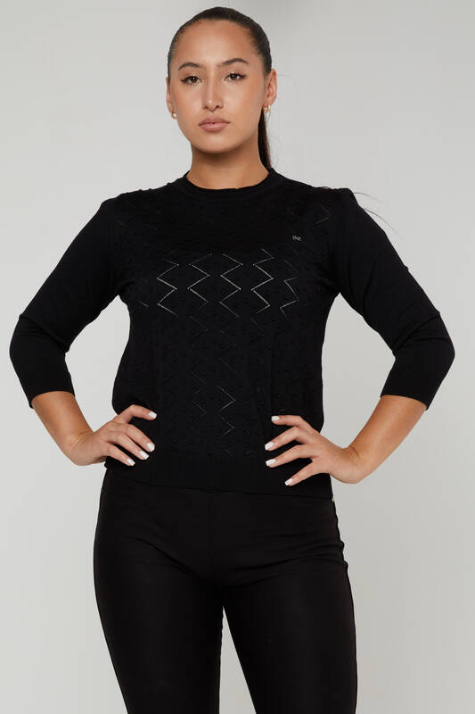 Suéter de punto de manga larga y cuello redondo negro - 31239 | KAZEE (Juego de 3 tallas M-L-XL)