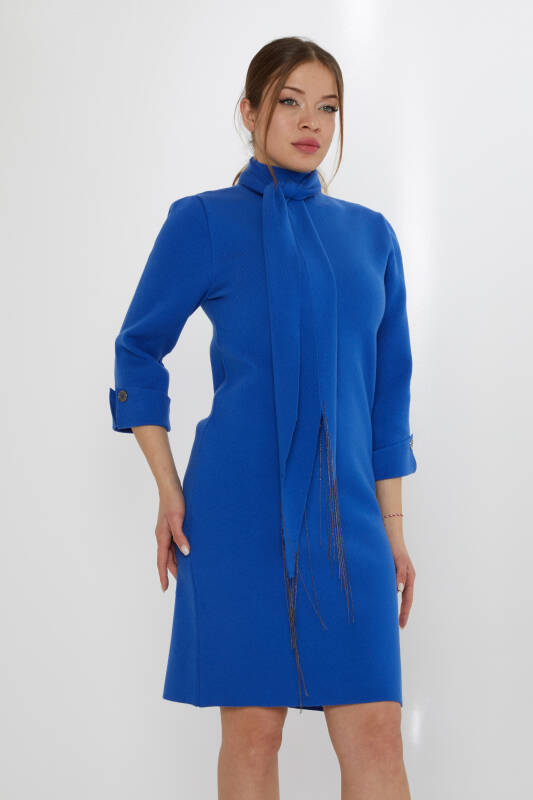 Sukienka dzianinowa z szalikiem i spinkami do mankietów - 30968 | KAZEE (zestaw 3 sztuk S-M-L)