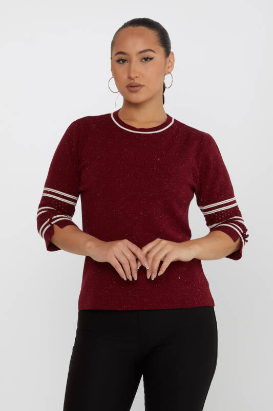 سترة محبوكة بأكمام مزينة بتفاصيل لامعة باللون الأحمر الداكن - 31316 | كازي (مجموعة من 3 مقاسات M-L-XL)