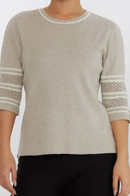 سترة محبوكة بأكمام مفصلة من فرو المنك اللامع - 31316 | كازي (مجموعة من 3 مقاسات M-L-XL)