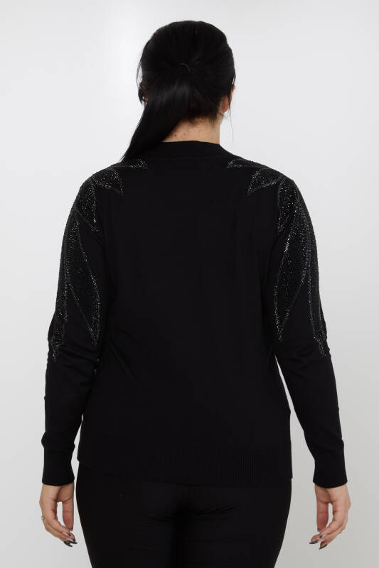 سترة محبوكة مطرزة بالأحجار مع ياقة قائمة على الكتف باللون الأسود - 31601 | كازي (مجموعة من 3 مقاسات M-L-XL)