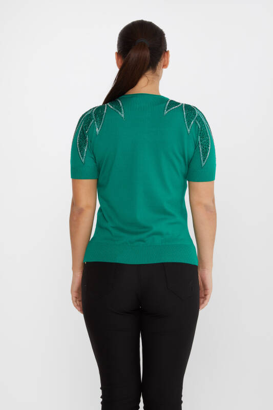 سترة محبوكة بكتف حجر مطرزة موديل أمريكي باللون الأخضر - 30792 | كازي (مجموعة من 4 مقاسات M-L-XL-2XL)