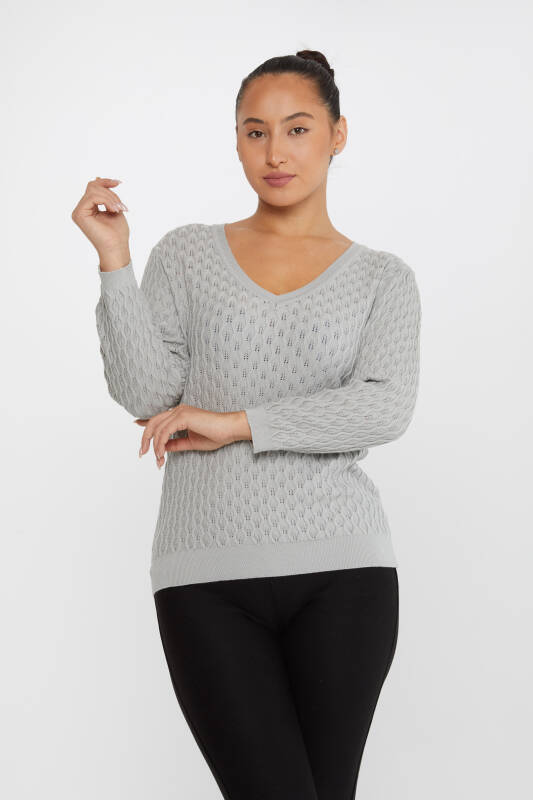 سترة محبوكة بفتحة رقبة على شكل حرف V باللون الرمادي - 31247 | كازي (مجموعة من 3 مقاسات M-L-XL)